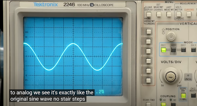 How often you see a "perfect" and "smooth" sine wave on an oscilloscope (as shown above) when someone was attempting to "prove" that CD-quality music can reconstruct the analog output like the original.